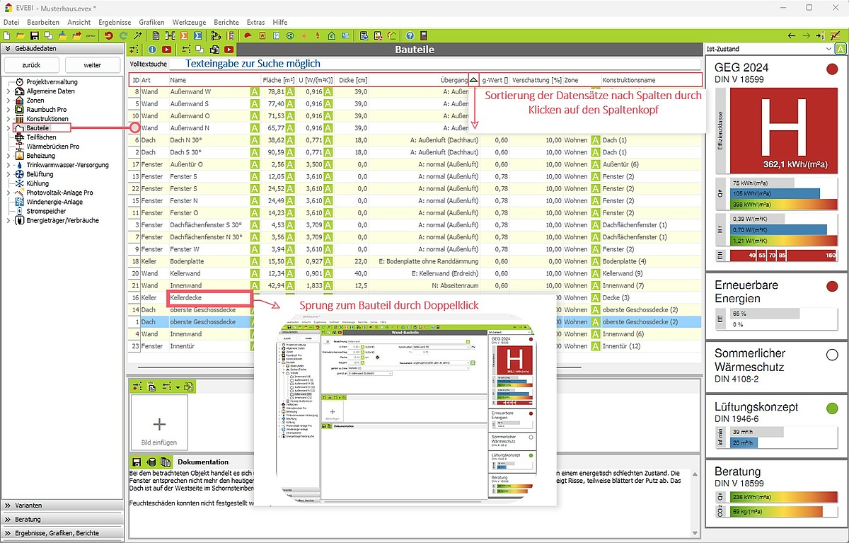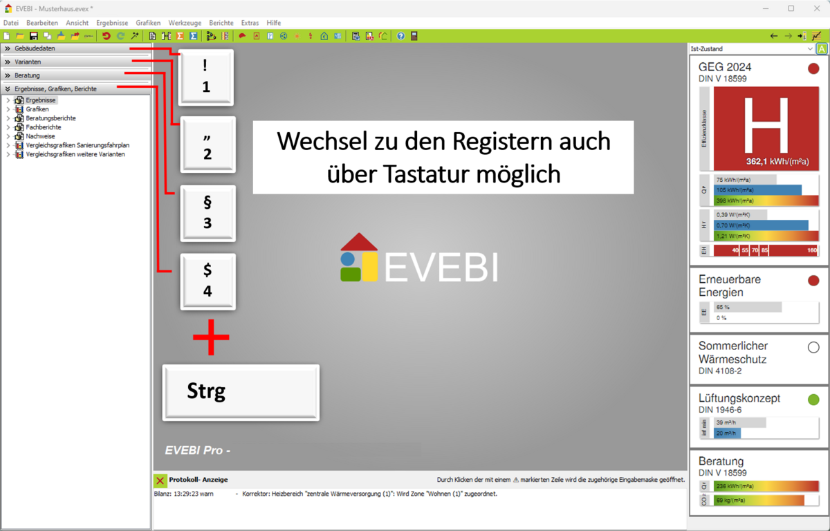 - Gebäudedaten: Strg 1