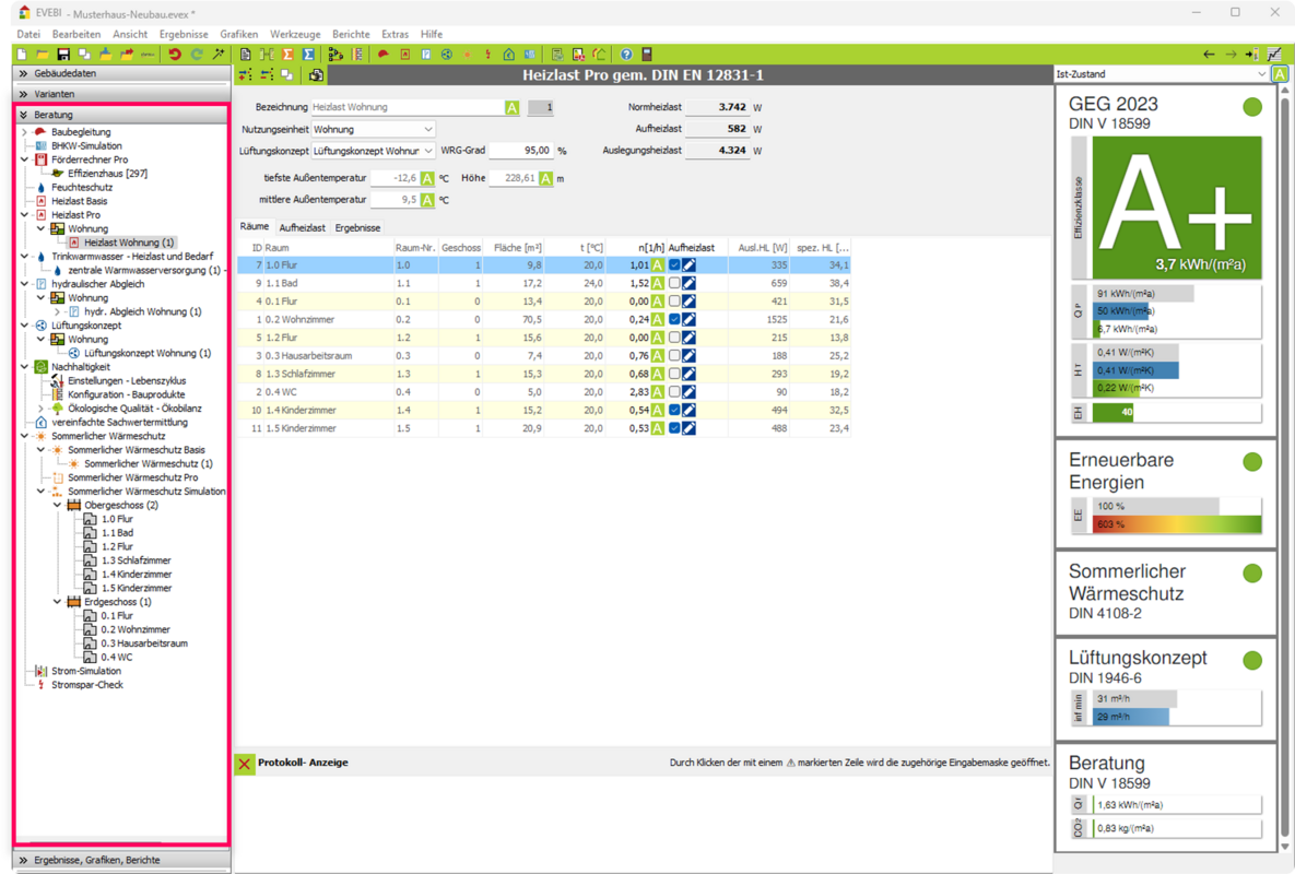 Das Register Beratung ermöglicht Ihnen mit Hilfe von Werkzeugen das Gebäude detailliert zu erfassen und zu bewerten. Dazu gehören z.B. die Heizlastberechnung, der hydraulische Abgleich u.v.m.