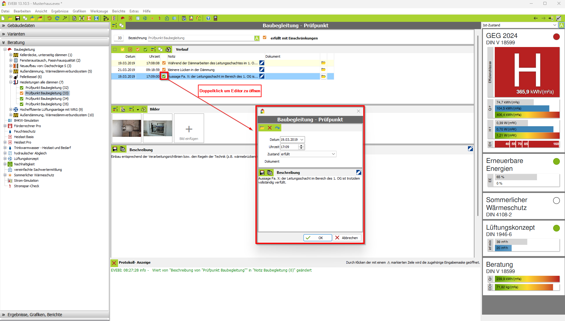 Baubegleitung Sanierung: Notizen eintragen, Editor mit Doppelklick öffnen