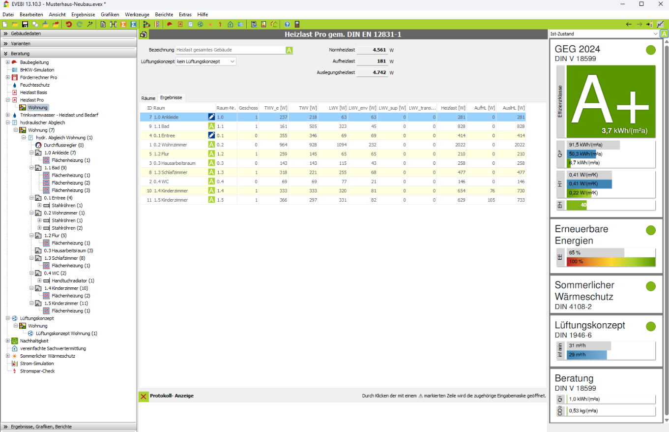 Ergebnisse zur Heizlastberechnung