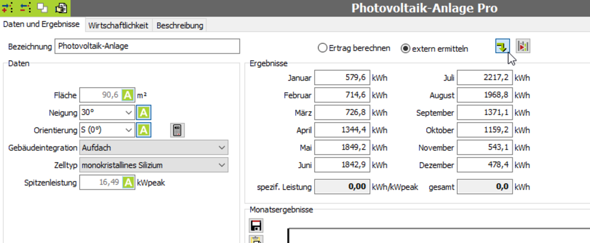Einfügen eines extern ermittelten PV-Ertrages