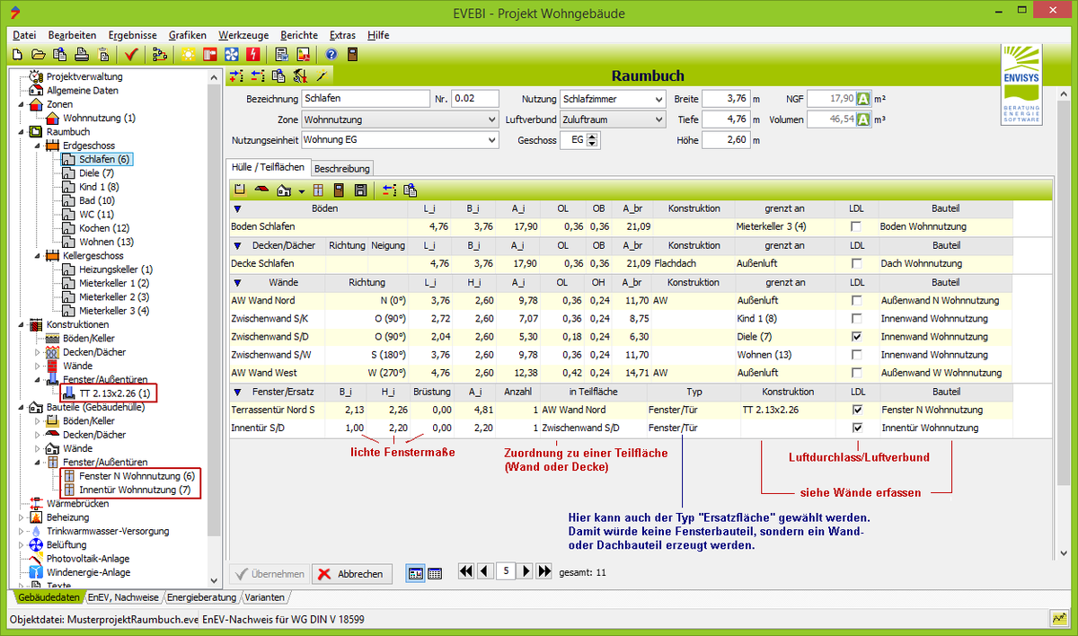 - Fenster/Ersatz: Die Bezeichnung der Fläche kann/soll geändert/erweitert werden.