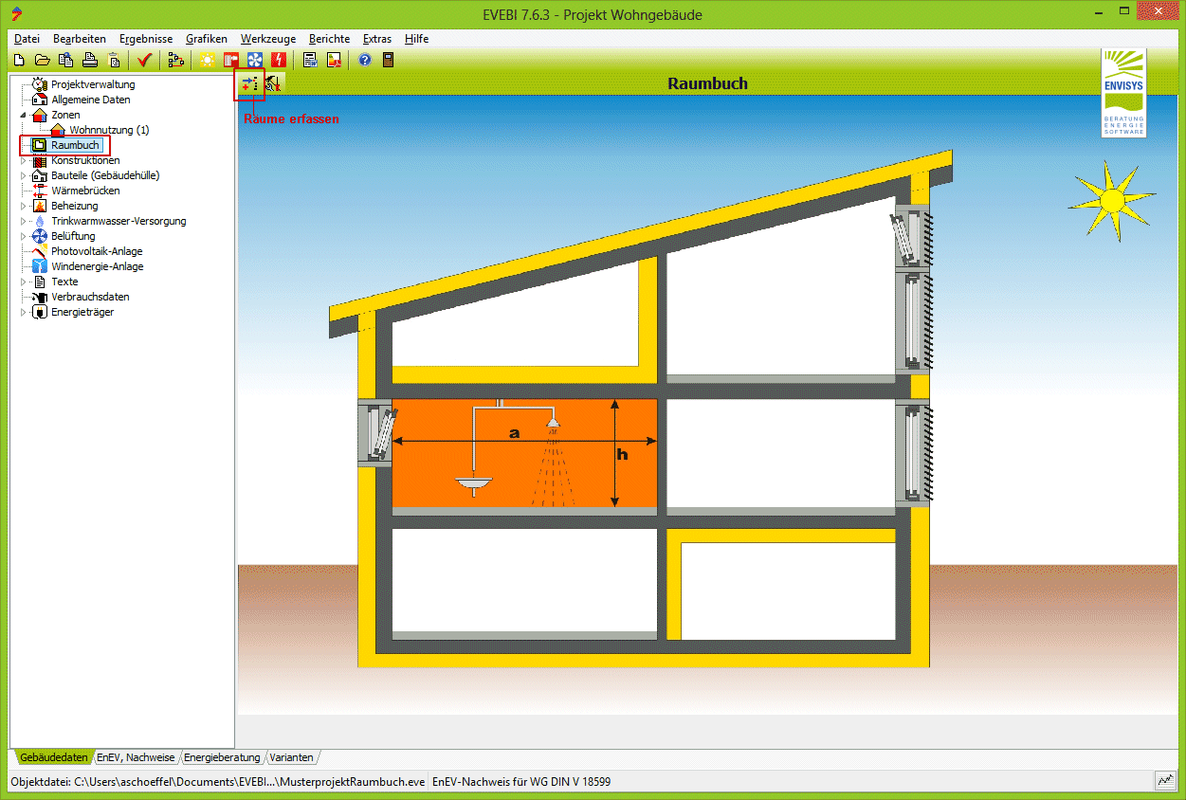 - Das Erfassen der Räume sollte vor dem Erfassen von Bauteilen erfolgen!