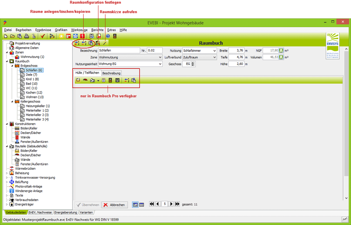 Zur Eingabe der Raumdaten siehe unter: Raumbuch Pro_ Raumdaten erfassen und bearbeiten