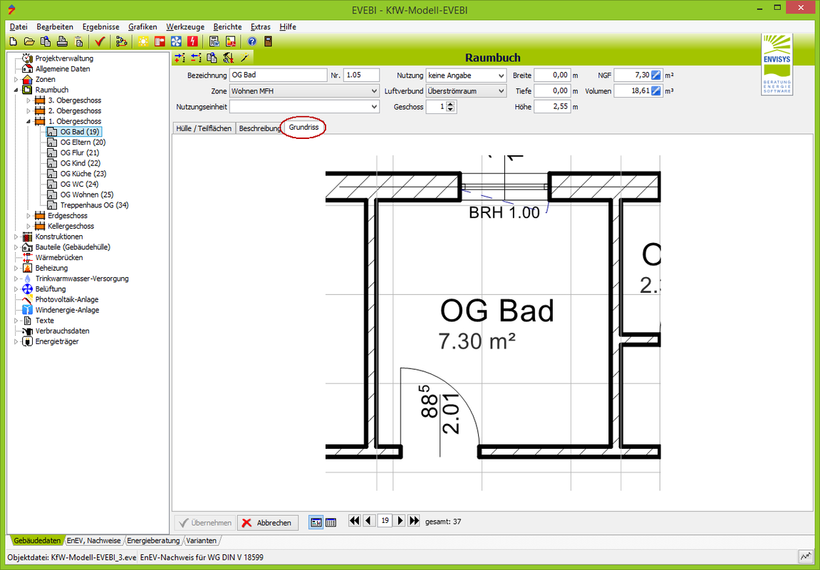 - Wählen Sie zum gewünschten Raum das Register Grundriss. (siehe Bild)