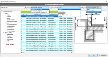 In dieser Datenbank sind alle Wärmebrückendetails nach DIN 4108 Bbl. 2 (2006 und 2019) sowie der KfW gespeichert. - Wählen Sie den Katalog (DIN 4108 2006 oder DIN 4108 2019).