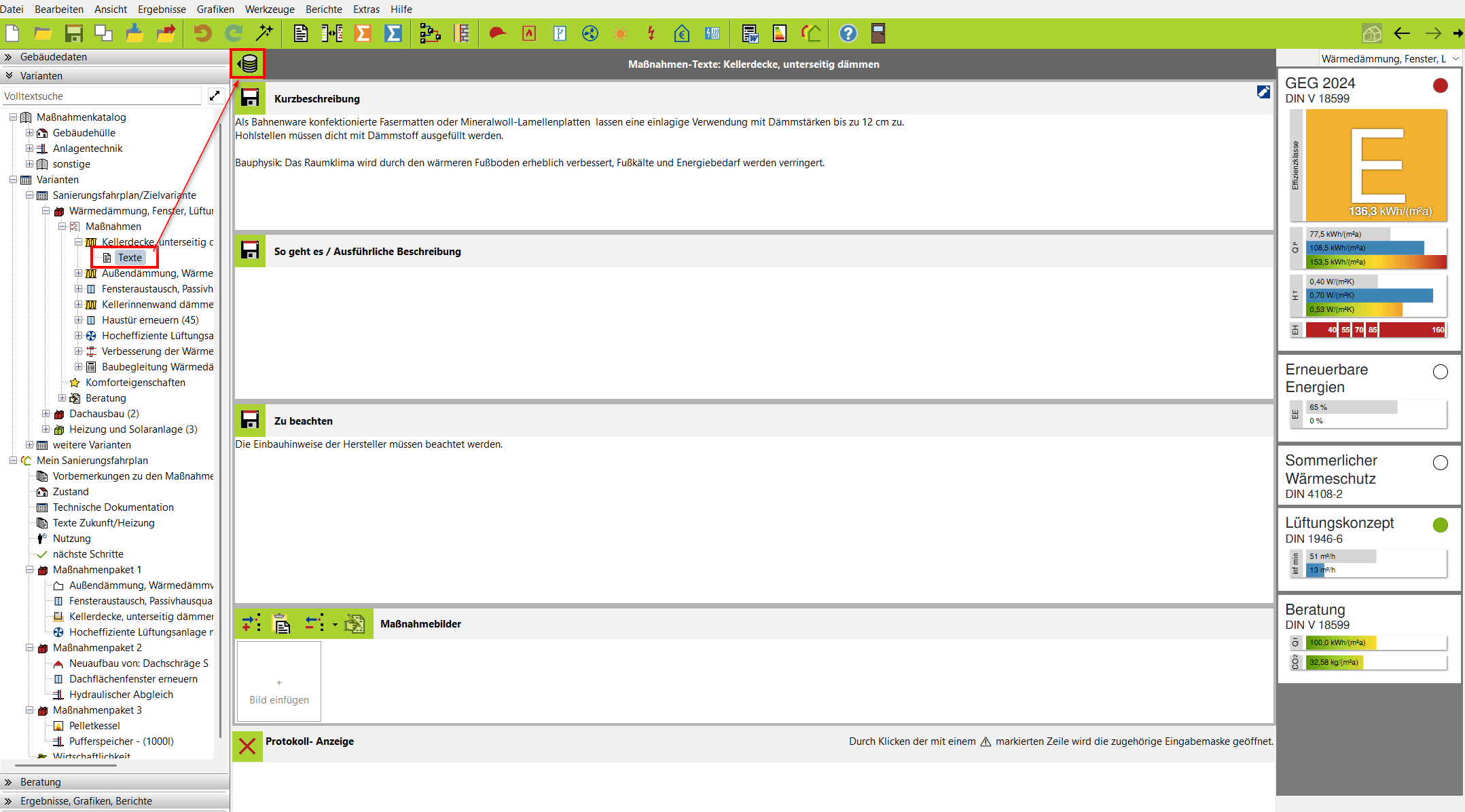 Wählen Sie unterVarianten > Maßnahmen > Texte aus. Dort haben Sie die Möglichkeit über das Datenbank-Symbol den iSFP Textgenerator zu öffnen.