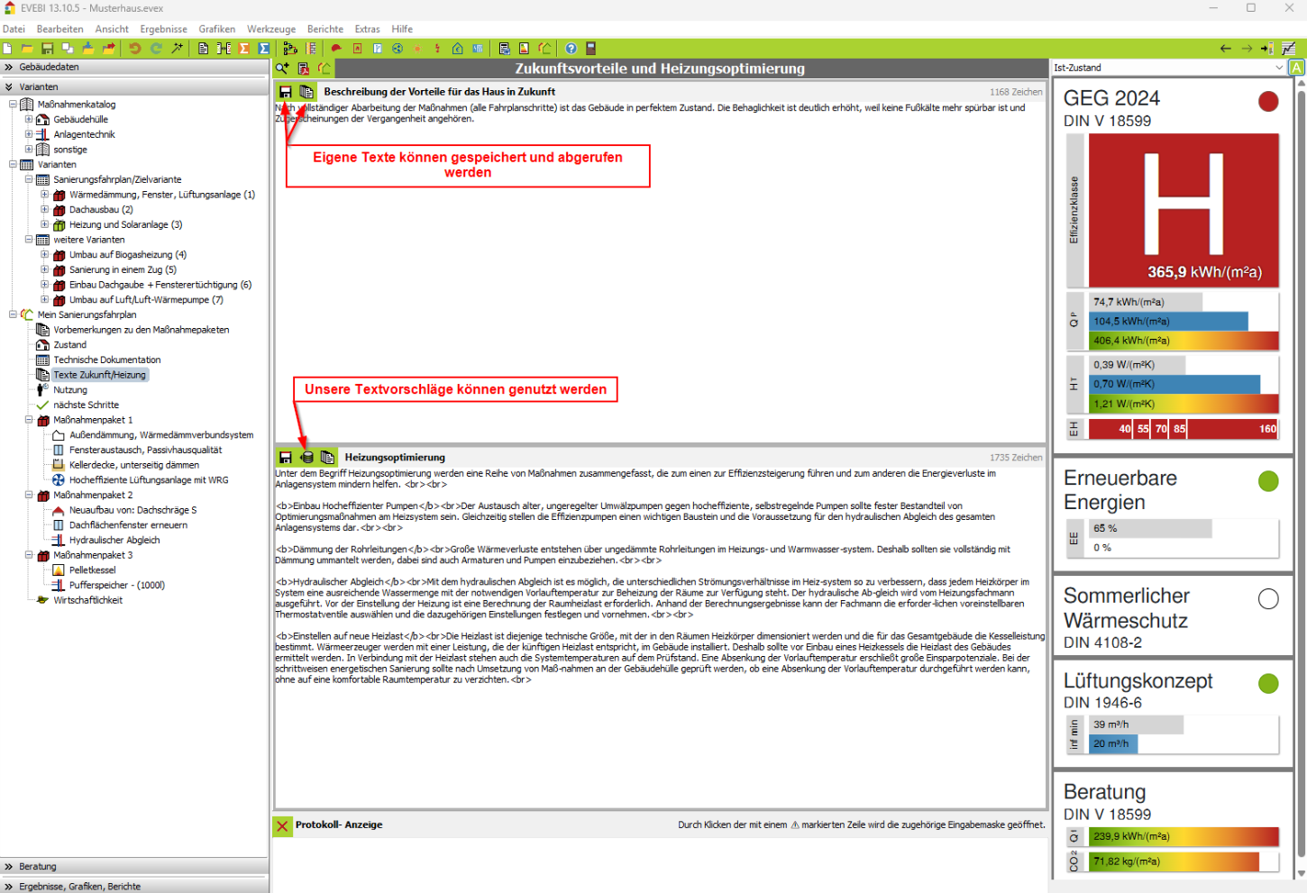 - Diese Texte erscheinen im Sanierungsfahrplan auf der Seite 6.