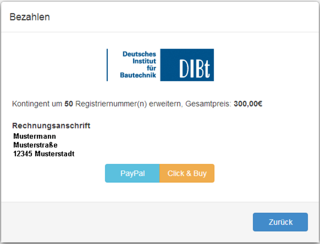 - Die Bezahlung erfolgt über PayPal oder Click \& Buy. Nach erfolgreicher Bezahlung stehen Ihnen die Registriernummern zur Verfügung.