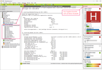3. Klicken Sie im Navigationsbereich auf den Eintrag KENNWERTE (REFERENZGEBÄUDE) Die Einzelergebnisse direkt in der Maske ausgegeben.