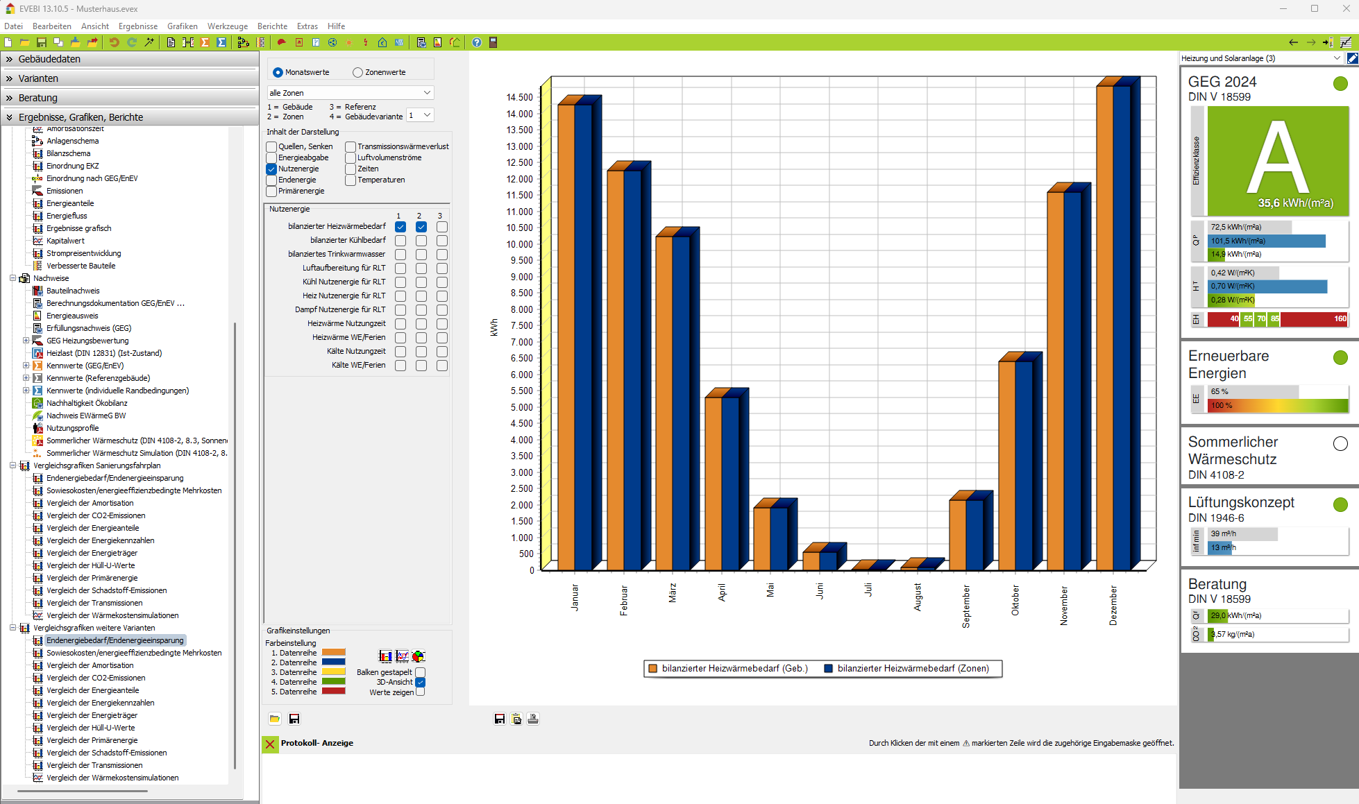 Über die 18599-Grafiken können Sie sich einen sehr guten Überblick über die Ergebnisse für einzelne Zonen und das gesamte Gebäude im Berechnungsverfahren nach DIN V 18599 verschaffen.