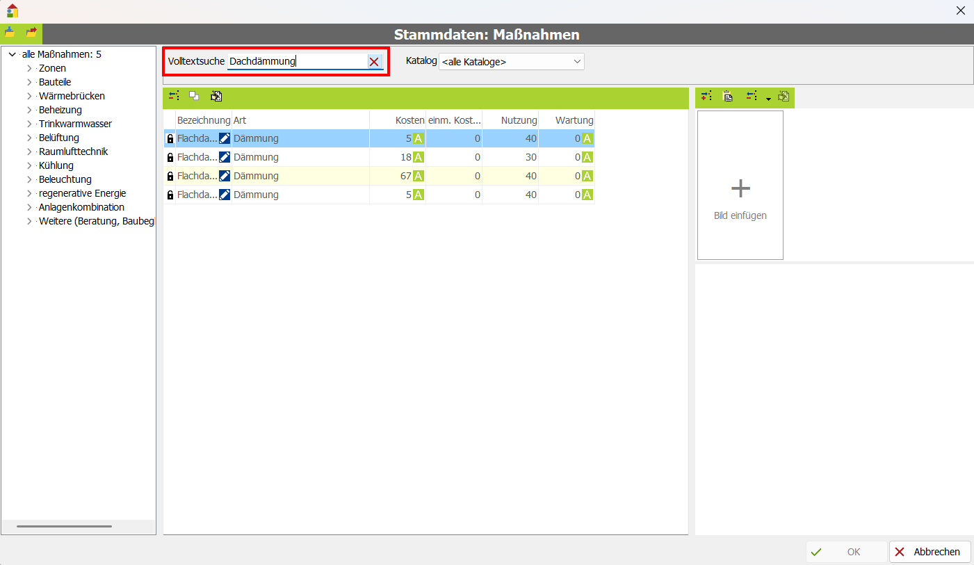 Die Maßnahmendatenbank ist sehr umfangreich. Sie haben einige Möglichkeiten, schnell die gewünschte Maßnahmen zu finden: