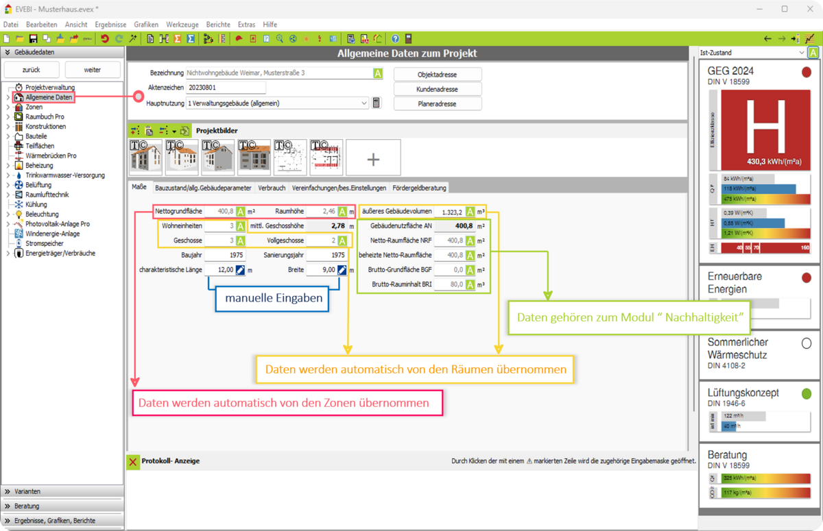 Wählen Sie links das Register GEBÄUDEDATEN.
