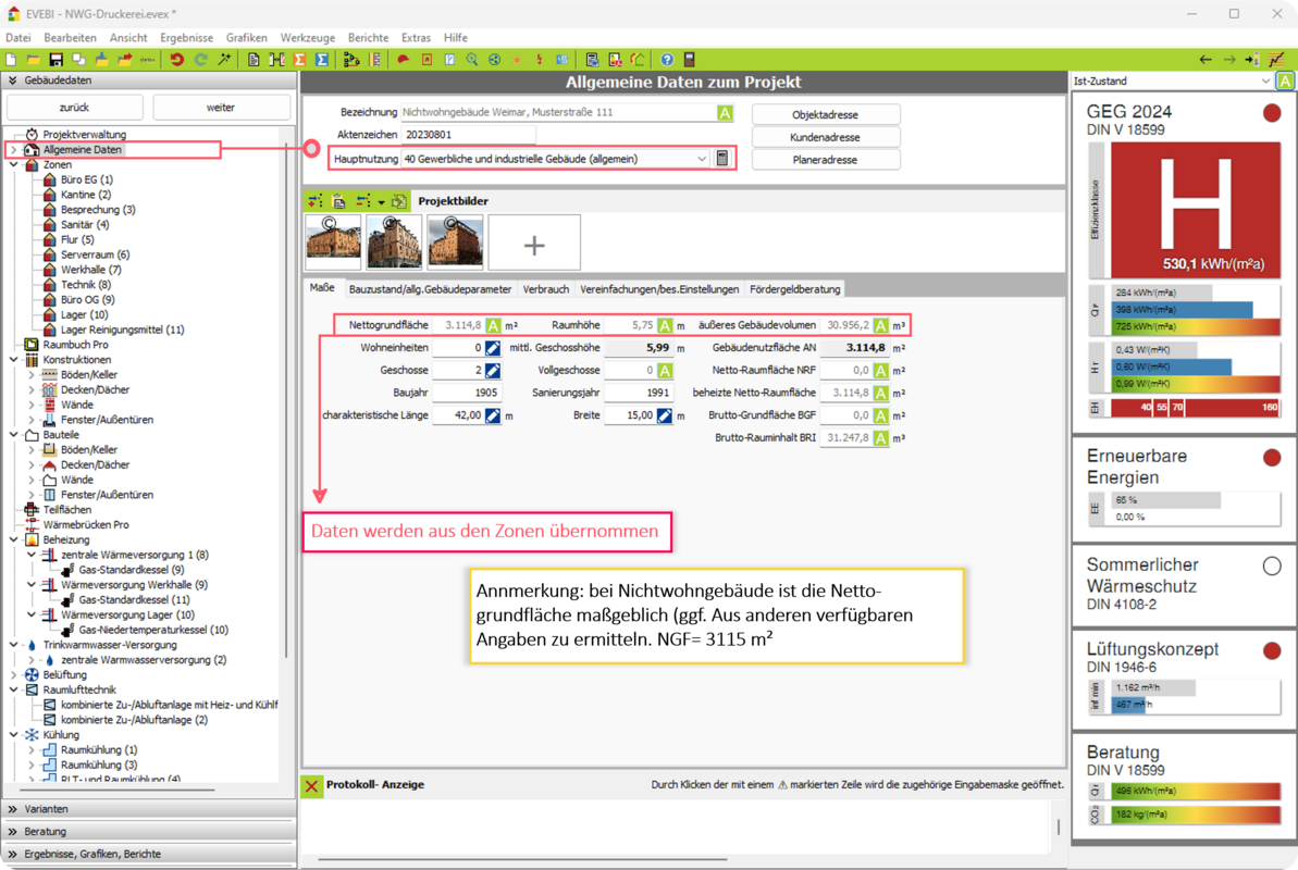 Zusätzliche Allgemeine Projektdaten für Nichtwohngebäude