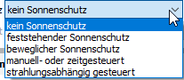 - Sonnenschutz: Verfügt das Fenster über einen Sonnenschutz, so können Sie diesen hier auswählen. Hier können Sie zwischen folgenden Optionen wählen: