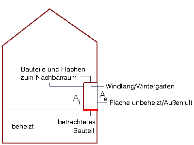 Bauteil grenz an einen kleinen unbeheizten Nebenraum, Wärmeübergang gemäß DIN 6946, Ziff. 5.4.2