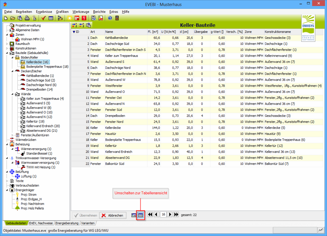 - Wählen Sie das Register GEBÄUDEDATEN.