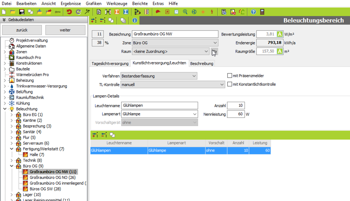 pj,Ist spezifische installierte Leistung für Beleuchtung im Berechnungsbereich j
