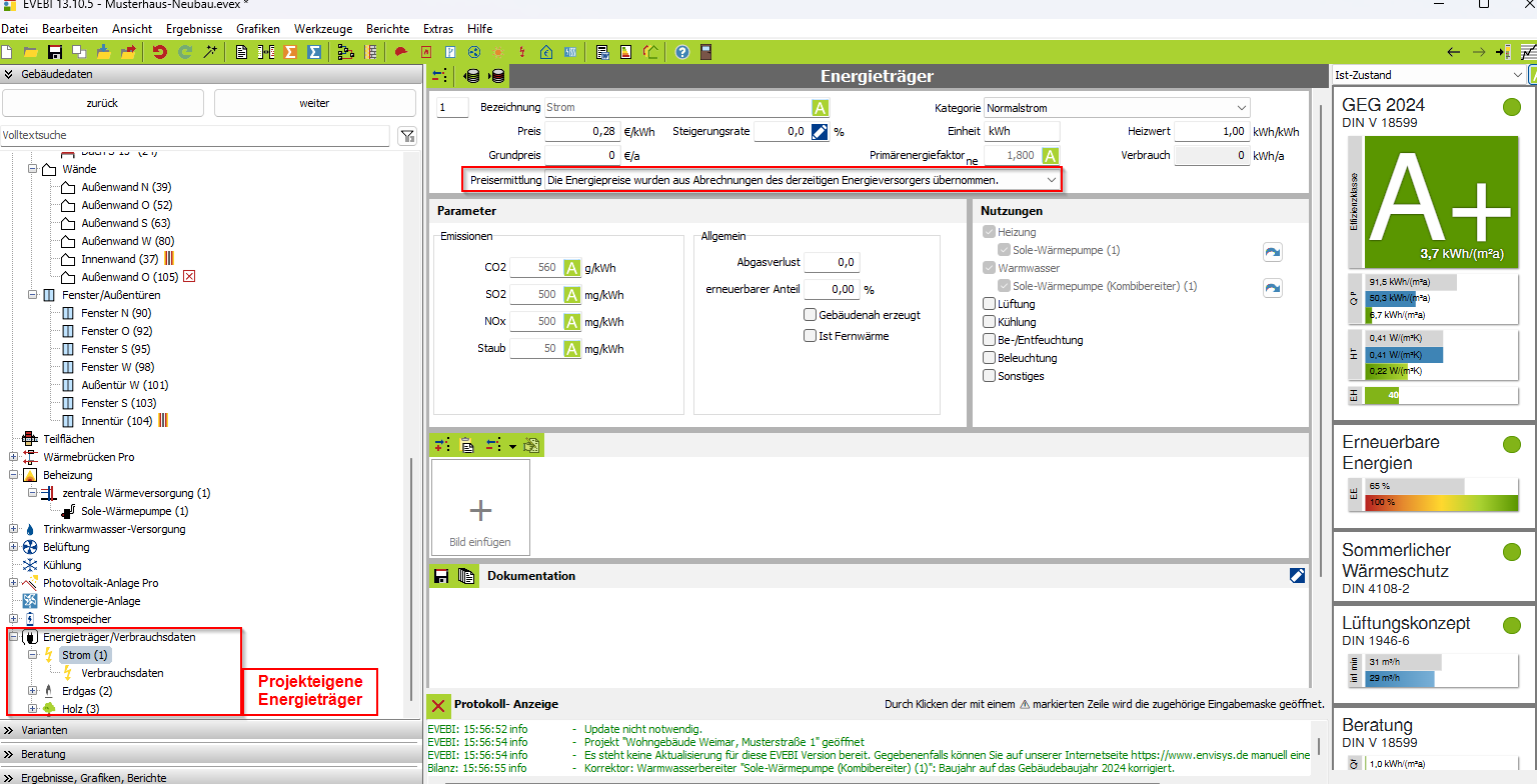 Alle im Projekt angelegten Energieträger benötigen eine Angabe zur Preisermittlung. Diese Angaben sind notwendig, um die Druckapplikation des ISFP fehlerfrei erzeugen zu können.
