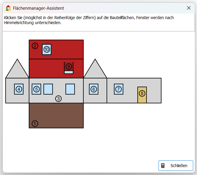 Der Flächenmanager ist ein Werkzeug zur Erfassung der Gebäudeflächen (wärmeübertragende Flächen) und des Volumens.