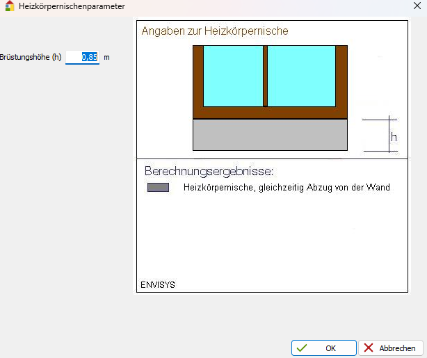 Dialog Fläche der Heizkörpernische (Schritt 3)