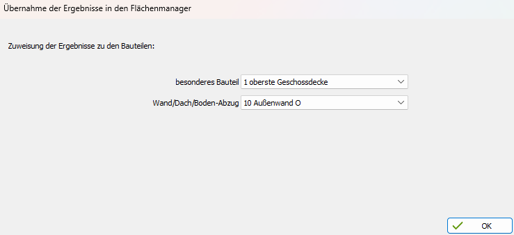 - Beim Verlassen des Flächenmanagers werden die Flächen den Bauteilen zugeordnet.
