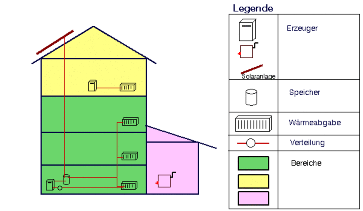 Das folgende Bild zeigt Ihnen eine schematische Darstellung von Heizungsbereichen.