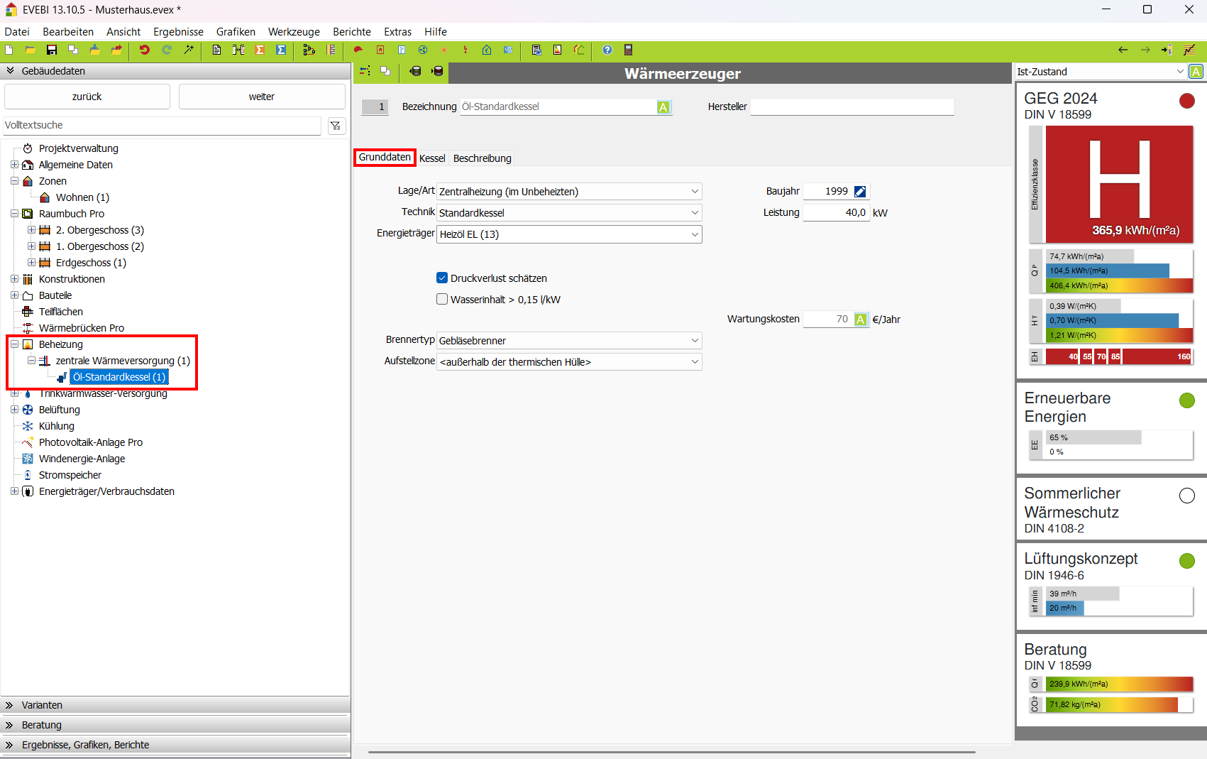 Grunddaten des Wärmeerzeugers (DIN V 4701-10/12, LEG)