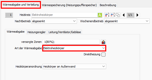 Wählen Sie unter Art der Wärmeabgabe: Elektroheizung