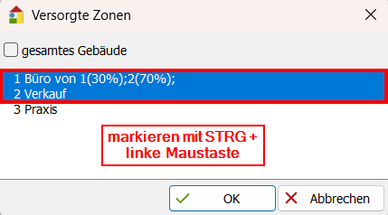 - Markieren Sie die weiteren Zonen mit STRG + Linke Maustaste, welche ebenfalls über den aktuellen Heizkreis versorgt werden sollen und bestätigen Sie den Dialog.