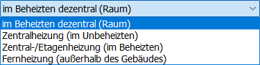 • Lage/Art: Geben Sie hier die Heizungsart an. Sie können zwischen folgenden Heizungsarten wählen: