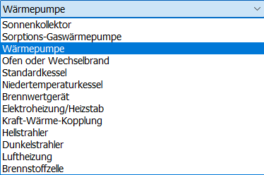 Mit der Auswahl wird die grundsätzliche Arbeitsweise der Heizungsanlage beschrieben. Je nach gewählter Technik werden ggf. weitere Daten zur Beschreibung des Erzeugers erforderlich. Eine Erläuterung der Daten finden Sie im Abschnitt des entsprechenden Erzeugers. * Energieträger: Je nach Auswahl der Technik wird bereits der zugehörige Energieträger eingetragen. Geben Sie ggf. einen anderen Energieträger an. * Druckverlust schätzen: Berechnung auf Basis des relativen Wasserinhaltes (pro kW Erzeugerleistung) * Brennertyp: Diese Auswahl ist nur nach Auswahl eines Heizkessels freigegeben.