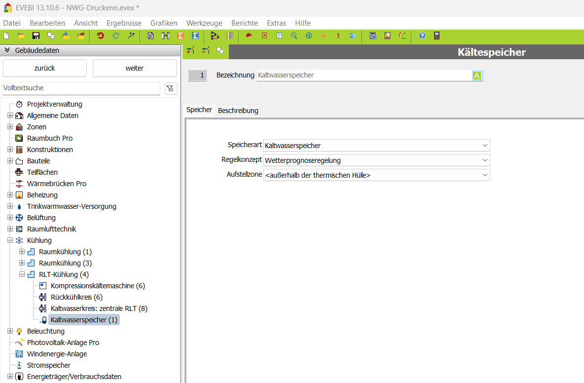 Daten des Kälte-Speichers (DIN V 18599)