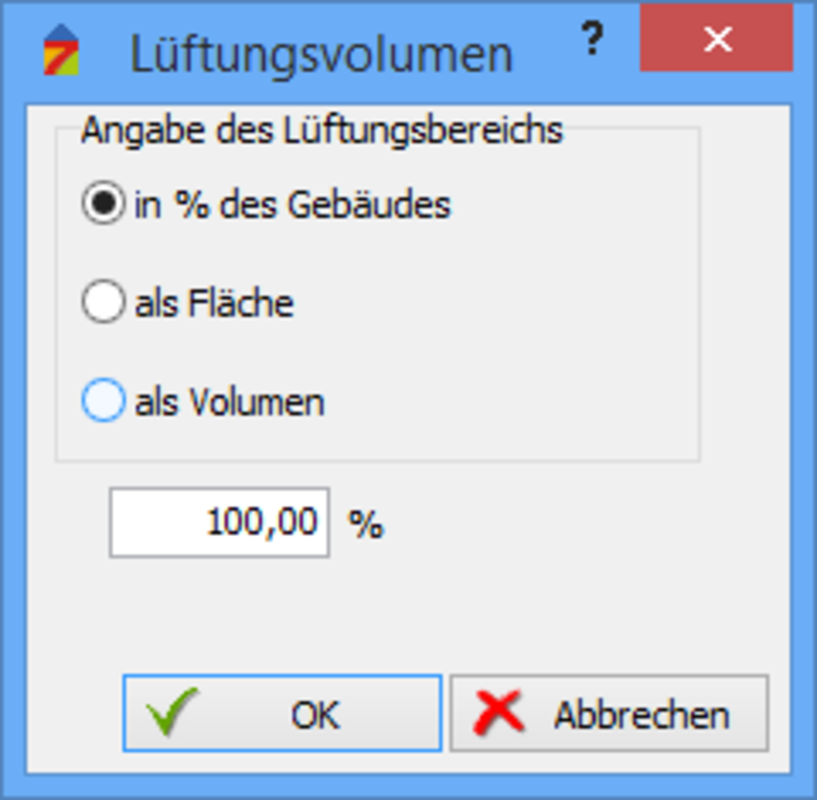 Auswahl der Deckungsrate über die Wohnfläche, das Volumen oder die belüftete Zone