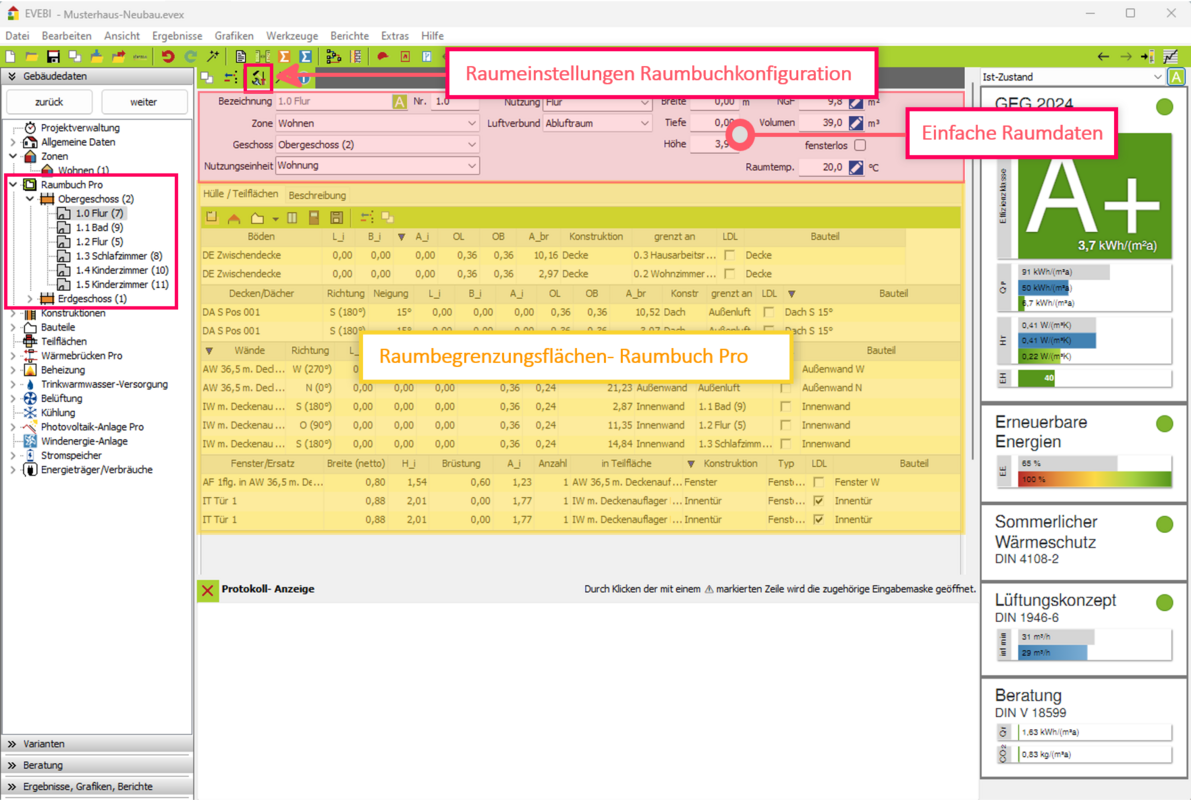 - Das Raumbuch Pro ist Voraussetzung für die Heizlastberechnung nach 12831 Bbl. 1 und den sommerlichen Wärmeschutz nach 4108-2.