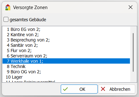 - Zonenzuordnung: Wählen Sie die Zonen, die über die RLT-Anlage versorgt werden. Klicken Sie dazu auf das Symbol