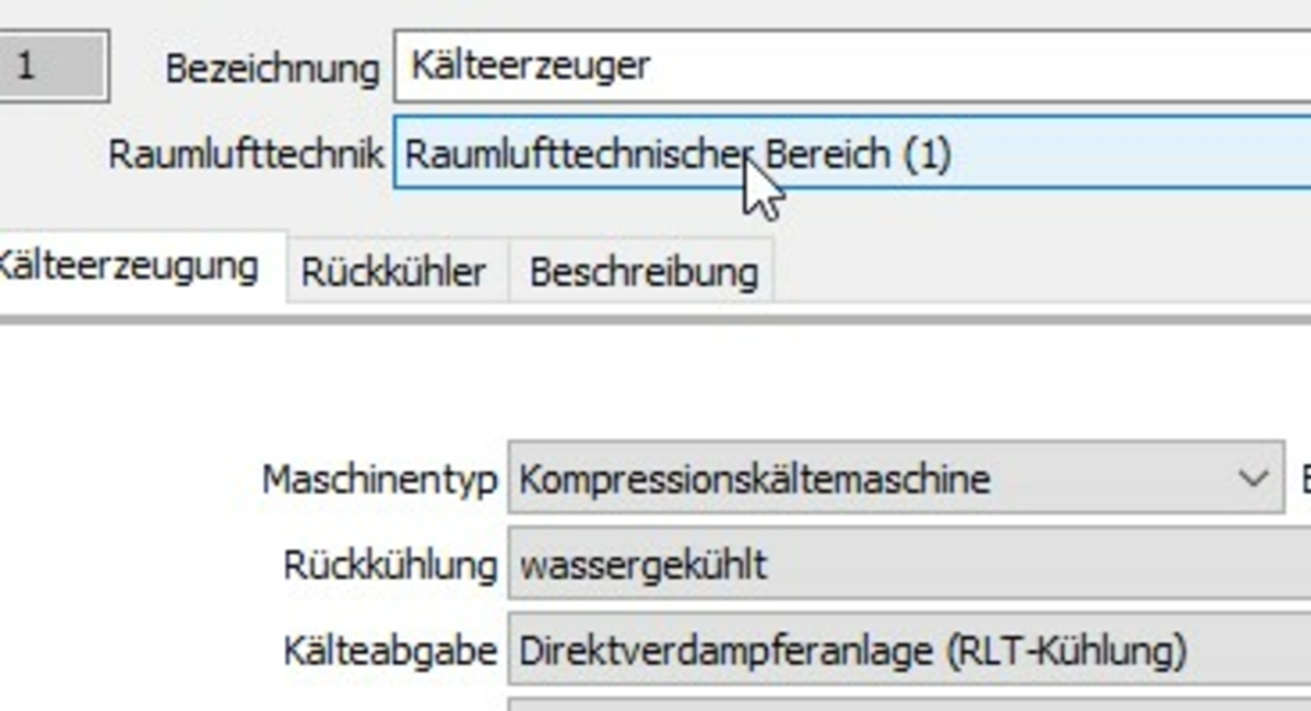 5. In der Raumlufttechnik die vorgesehene Lüftungsanlage anlegen (wenn vorhanden wie o.g.).