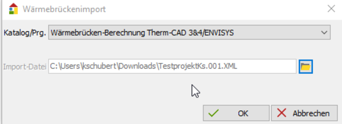- Wählen Sie die externe Software sowie die Importdatei und bestätigen Sie den Dialog. Die Wärmebrücken werden importiert.