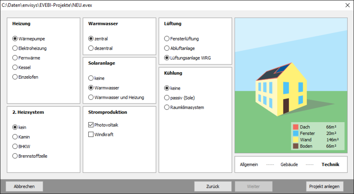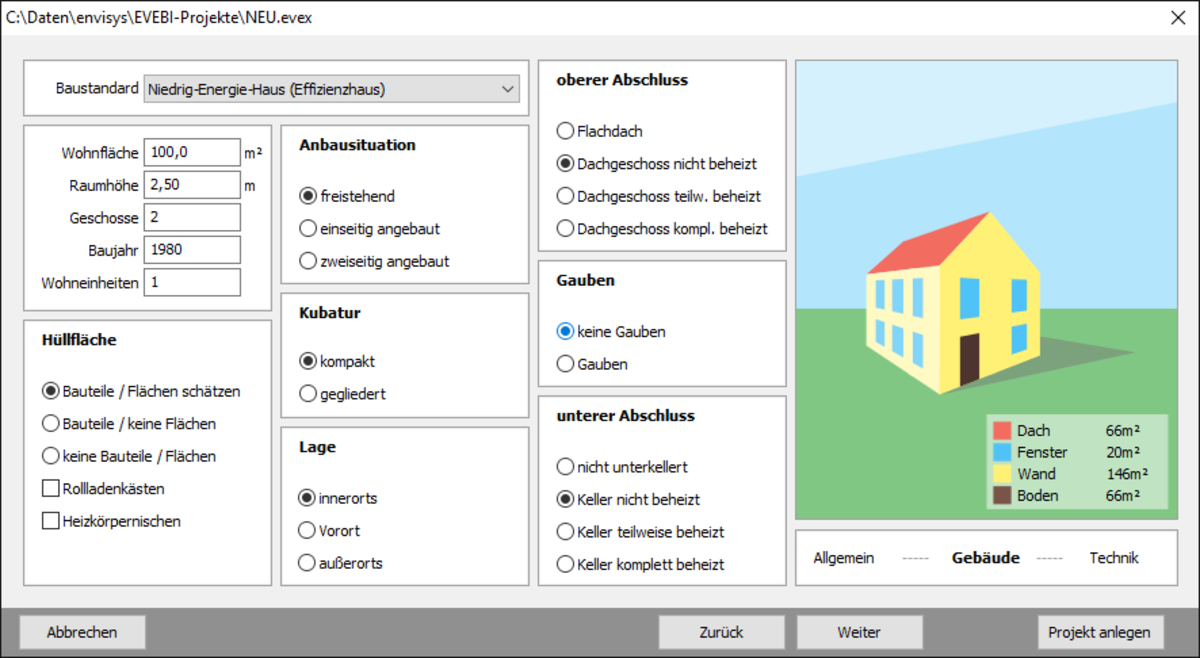 Detailliert: Die Eingabe der Gebäudedaten erfolgt sowohl für die Hülle als auch für die Anlage detailliert.