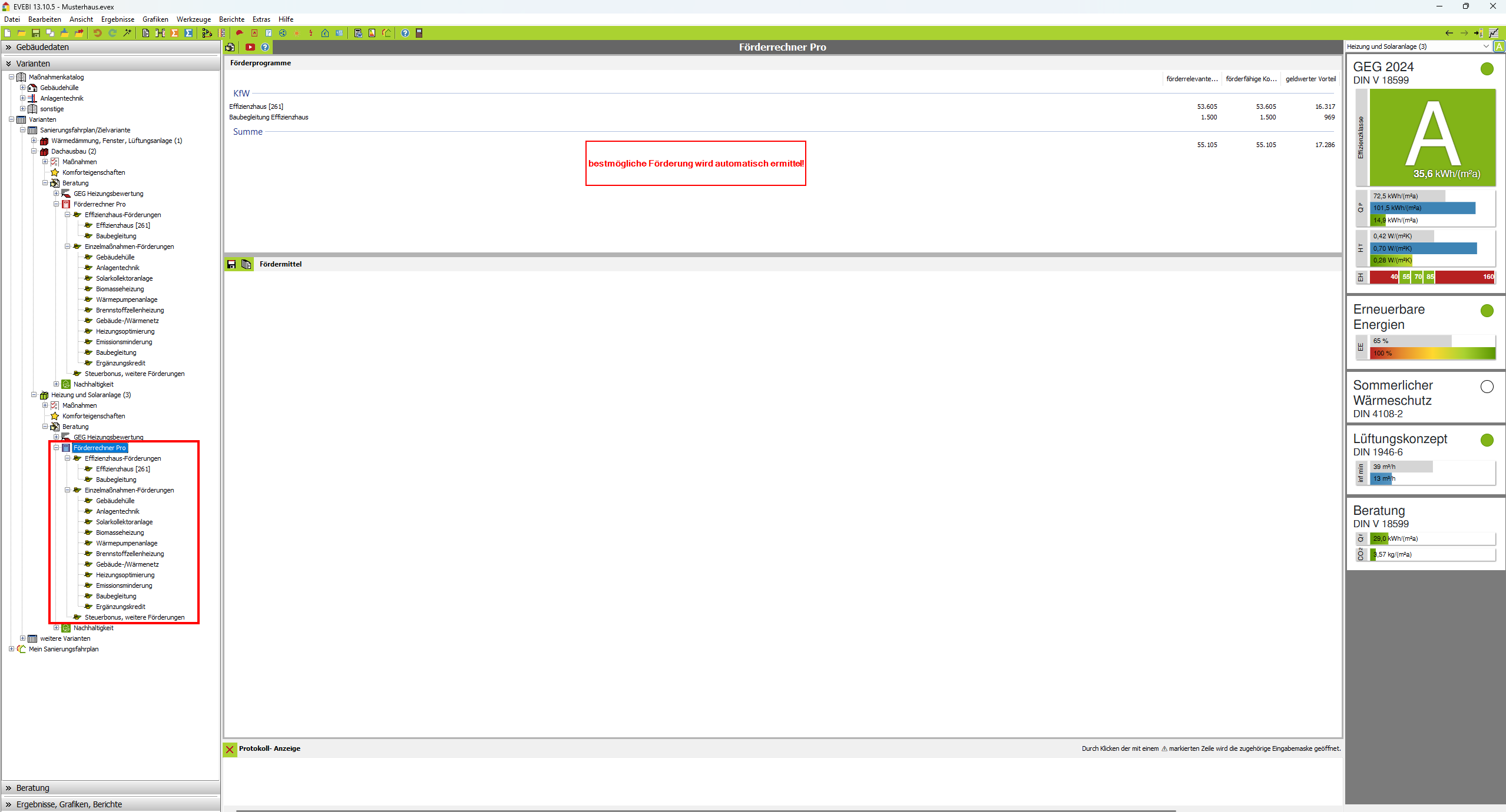 - Förderprogramm: EVEBI errechnet automatisch das/die günstigste Förderprogramm/e: