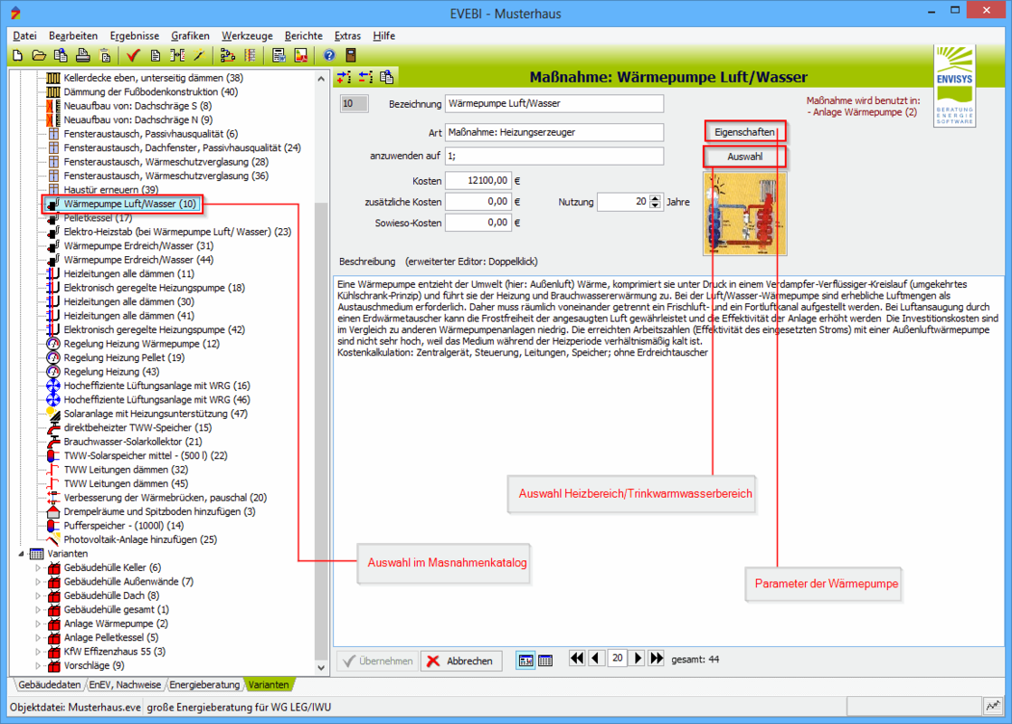 Achtung! Das Bearbeiten einer Maßnahme hat Auswirkung auf alle Varianten, denen diese Maßnahme bereits zugeordnet ist!