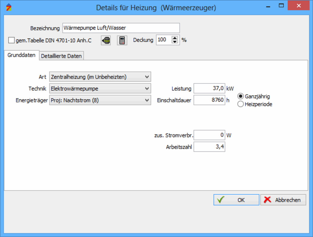 Bearbeiten: Anlagenkombination - Gaswärmepumpe