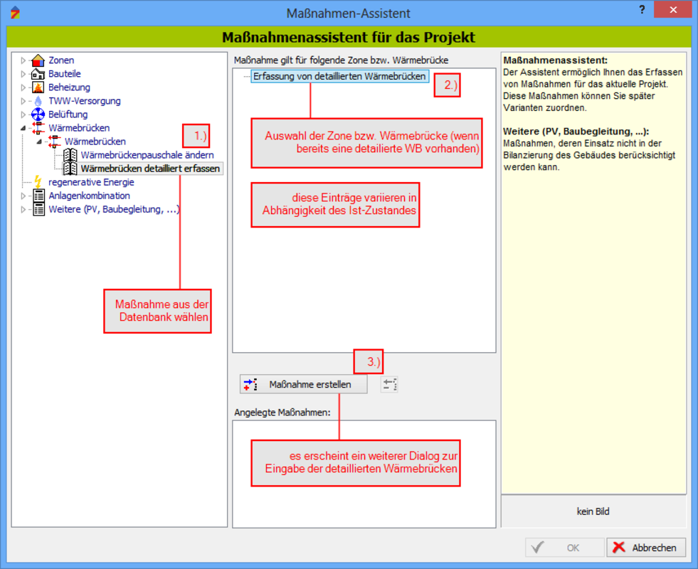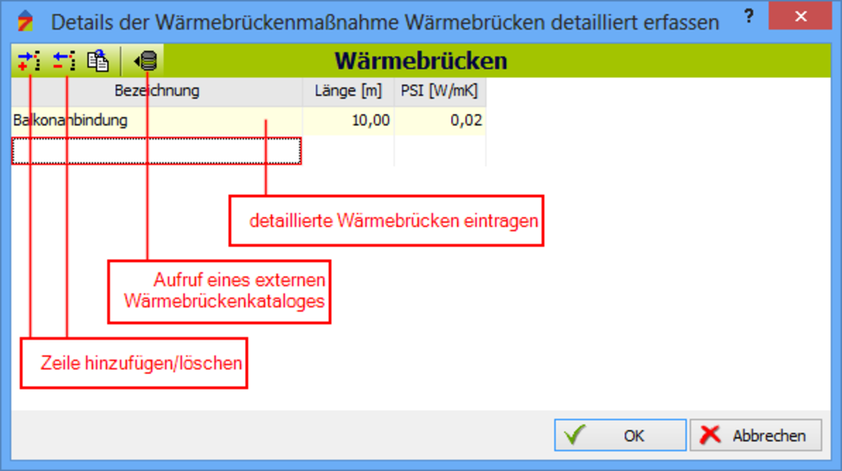 Vorgehen zum Erfassen der Maßnahme der detaillierten Wärmebrücken