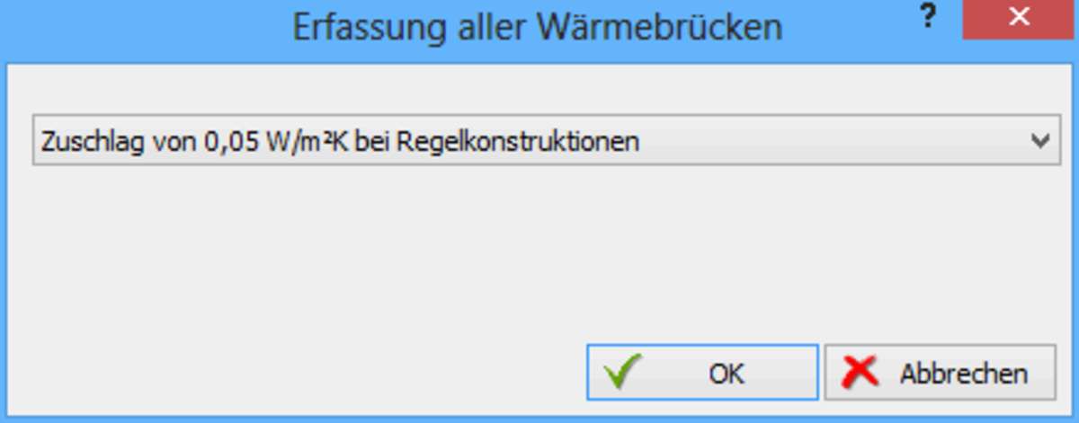 Wählen Sie hier den gewünschten Wärmebrückenzuschlag.