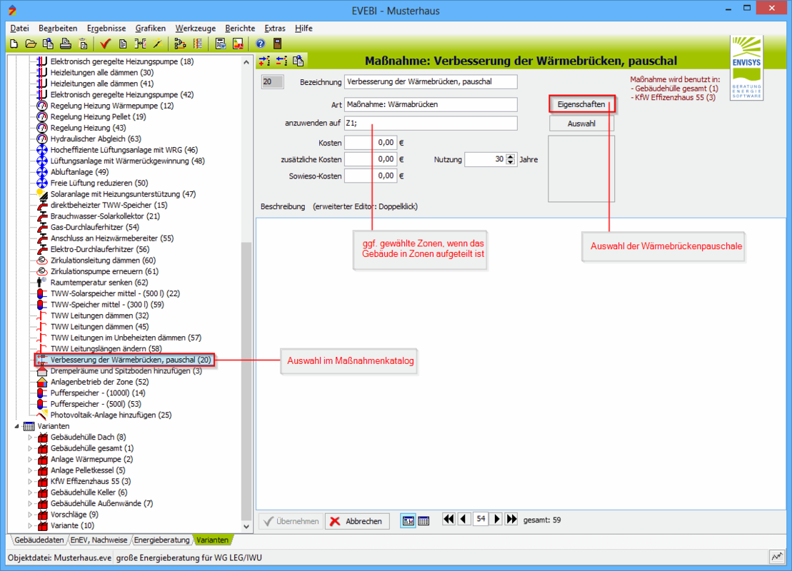 Achtung! Das Bearbeiten einer Maßnahme hat Auswirkung auf alle Varianten, denen diese Maßnahme bereits zugeordnet ist!