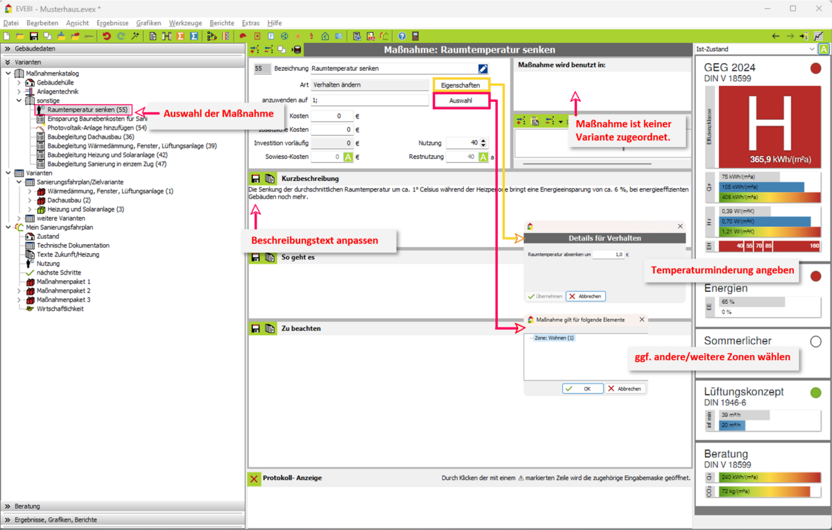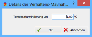 - Erläuterungen zum Erfassen der Maßnahme Raumtemperatur finden Sie unter: Erfassen_ Raumtemperatur senken