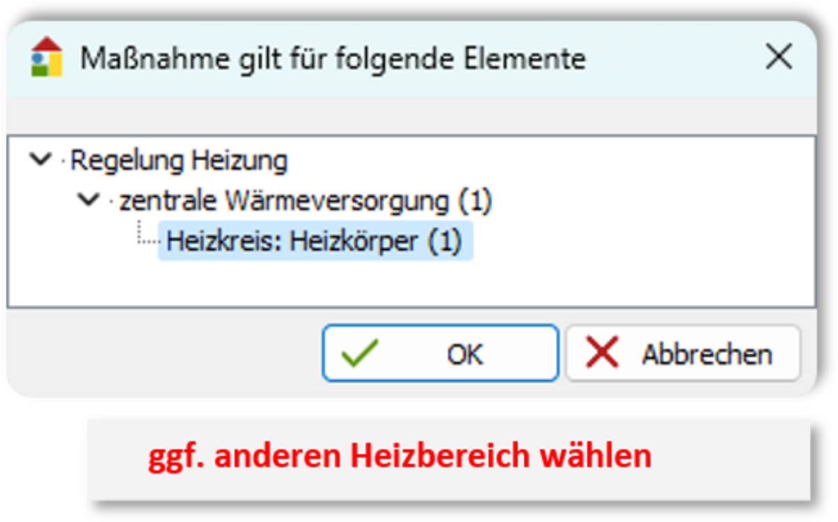 Maske Auswahl der Heizbereiche (Schritt 4)