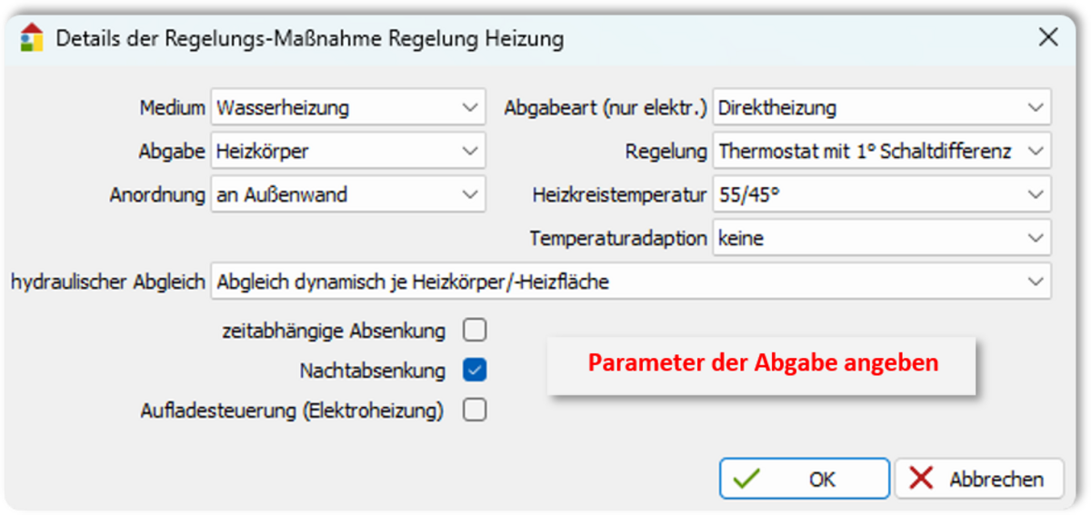 Weitere Informationen zu den Parametern im Dialog finden Sie unter: Wärmeabgabe Anlagenbeschreibung