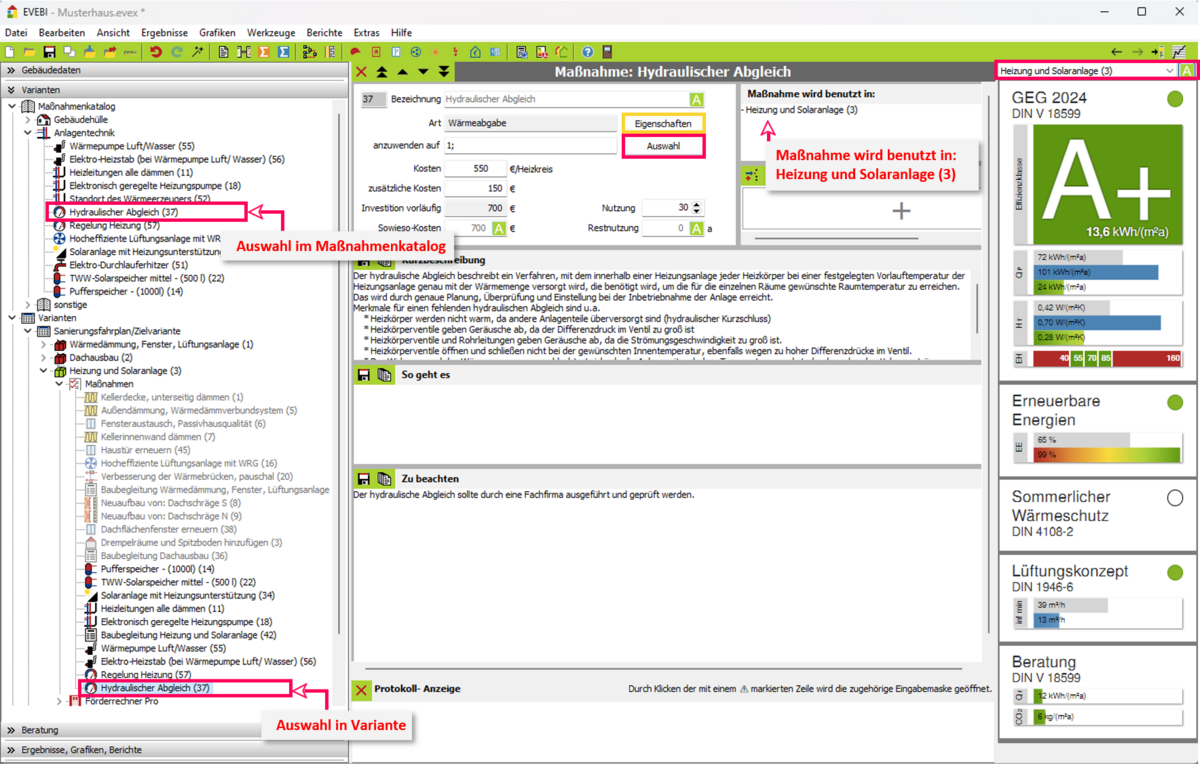Achtung! Das Bearbeiten einer Maßnahme hat Auswirkung auf alle Varianten, denen diese Maßnahme bereits zugeordnet ist!