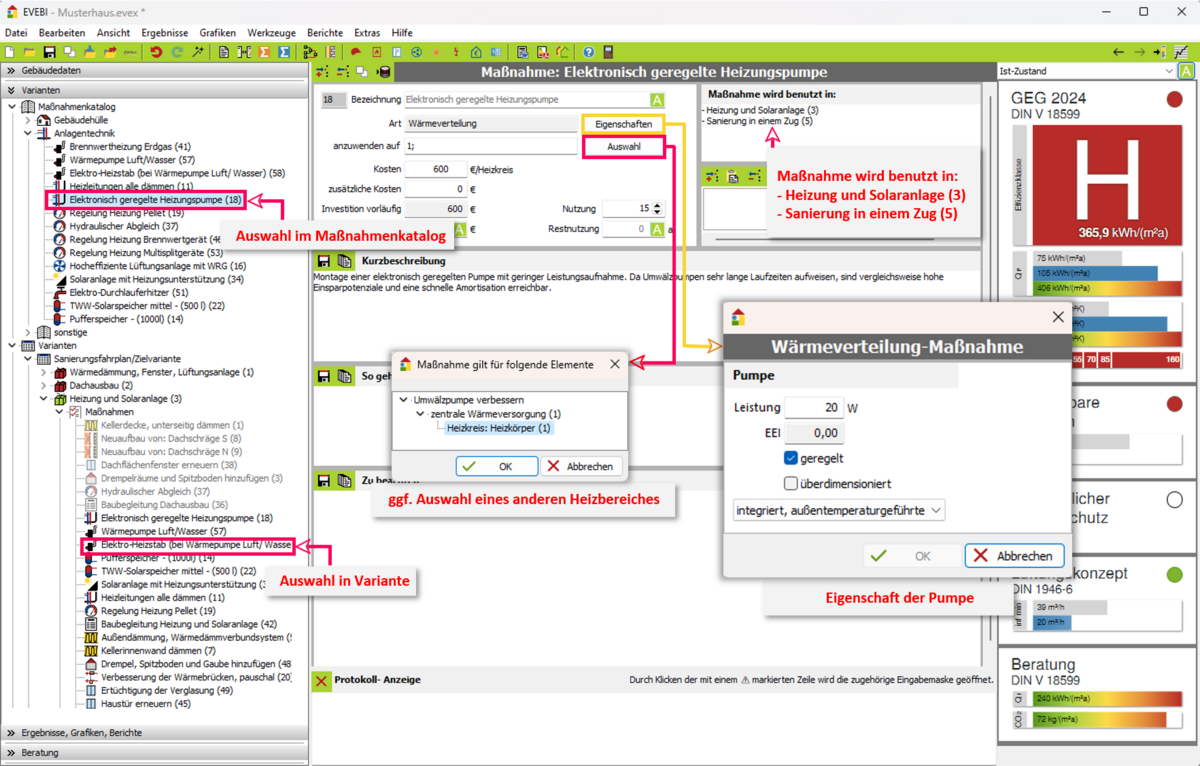 Pumpenmanagement: nur für Berechnung nach DIN V 18599 relevant! Hier können Sie das Pumpenmanagement auswählen. Anhand dieser Auswahl wird ein Korrekturfaktor für die Berechnung des hydraulischen Energiebedarfs gesetzt.